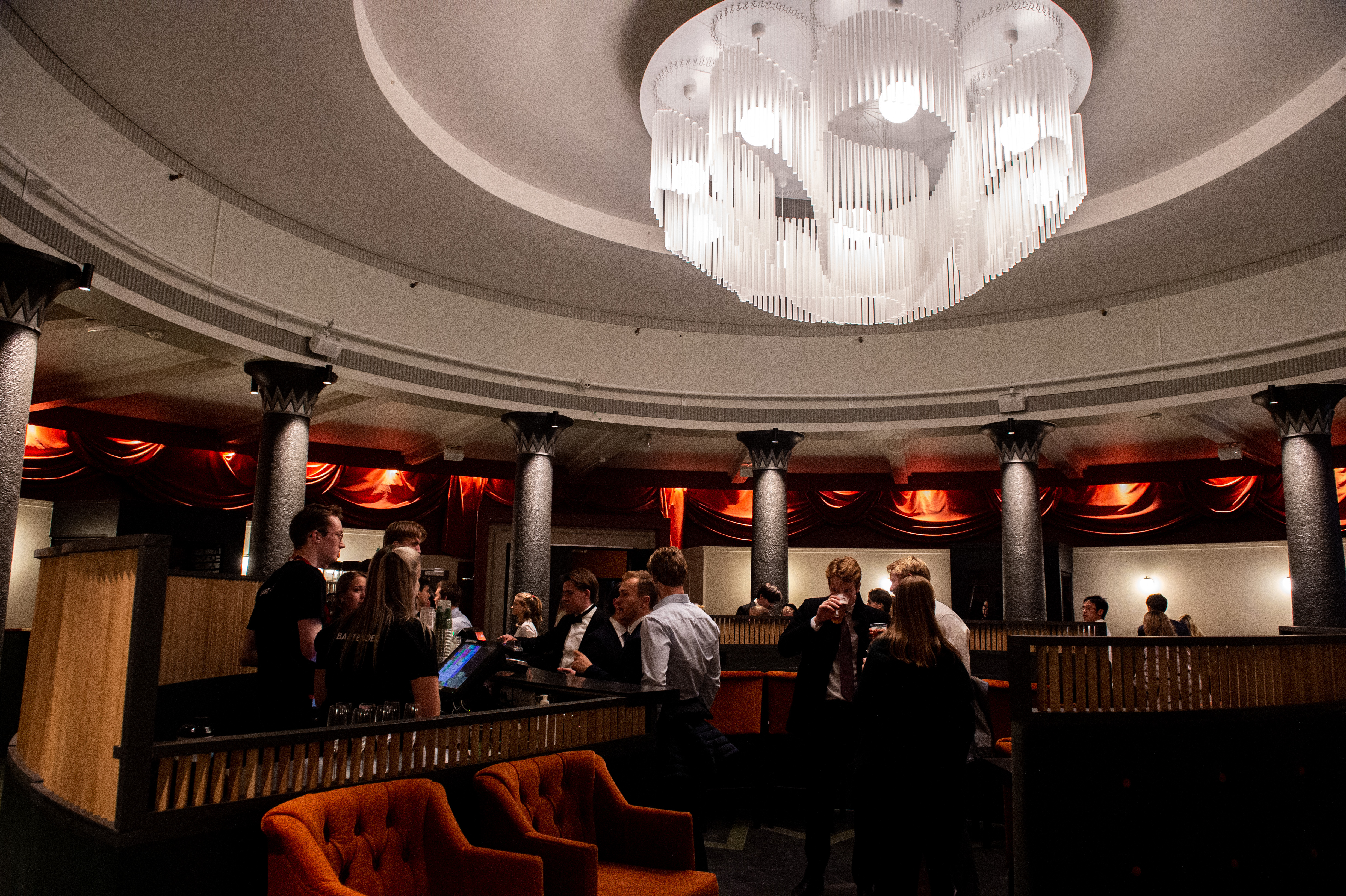 Når du går inn hovedinngangen på Samfundet er det Rundhallen som møter deg. Her finner du både garderobe, lokalets bar og informasjon om hva som foregår på Huset til enhver tid. Rundhallen er Samfundets myldreplass, og et enkelt sted å møtes dersom man har gått seg bort. I tillegg er det også det roligste lokalet på huset, så det er det perfekte stedet for å samle gjengen og sette i gang en minneverdig kveld på Samfundet. Under den flotte lysekronen midt i rommet ligger Samfundets grunnstein, lagt ned av Kronprins Olav i 1927. Fra glassplata over steinen kan du stå og høre en helt spesiell akustikk. Rundhallen var byggeprosjektet til UKA-07 og UKA-21, og ble i de anledningene pusset opp.